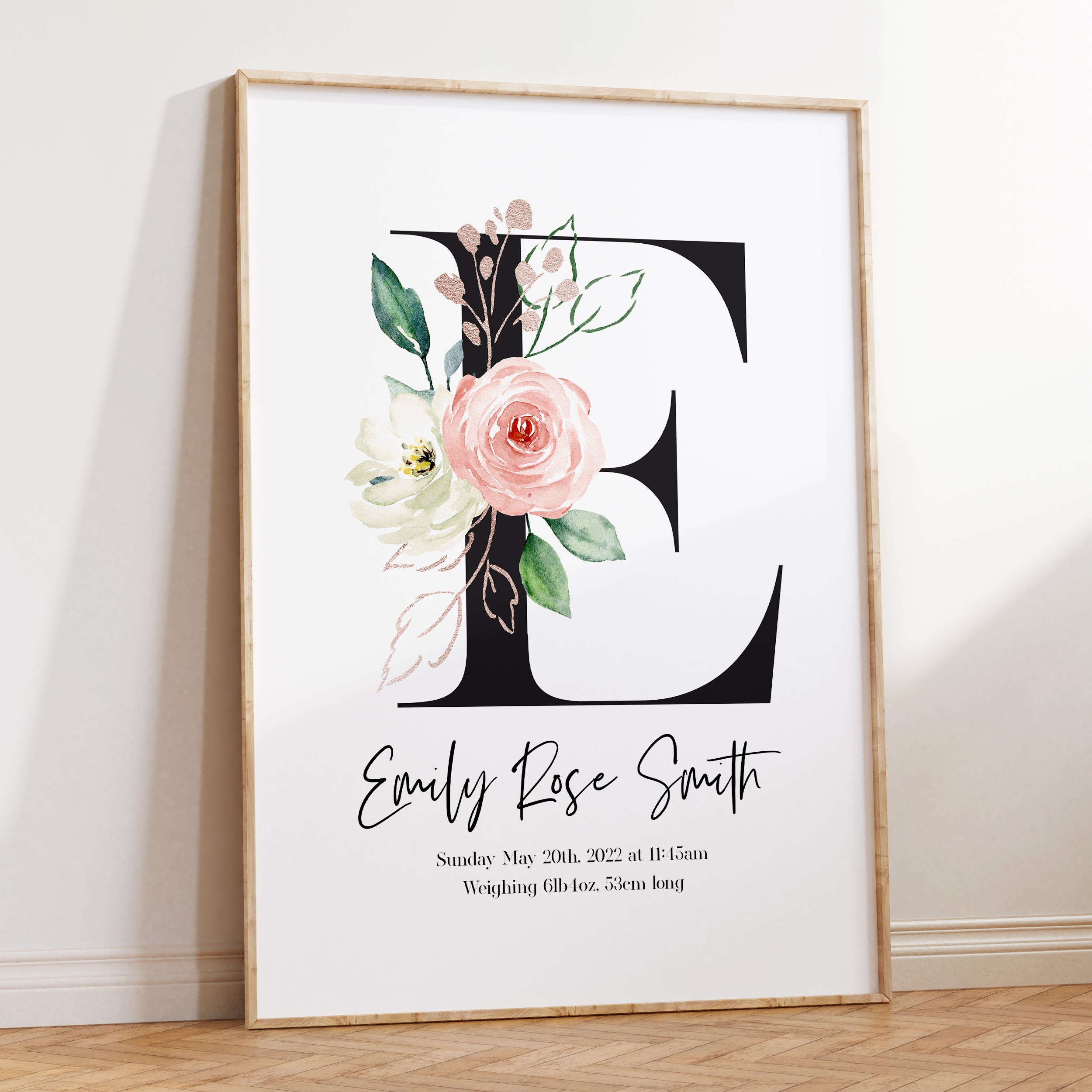 Bring charm and sweetness to your little one’s space with this personalised nursery print, featuring your choice of letter and surrounded by whimsical details — a friendly mouse in a mustard dress, a smiling butterfly, golden stars, and soft floral accents.