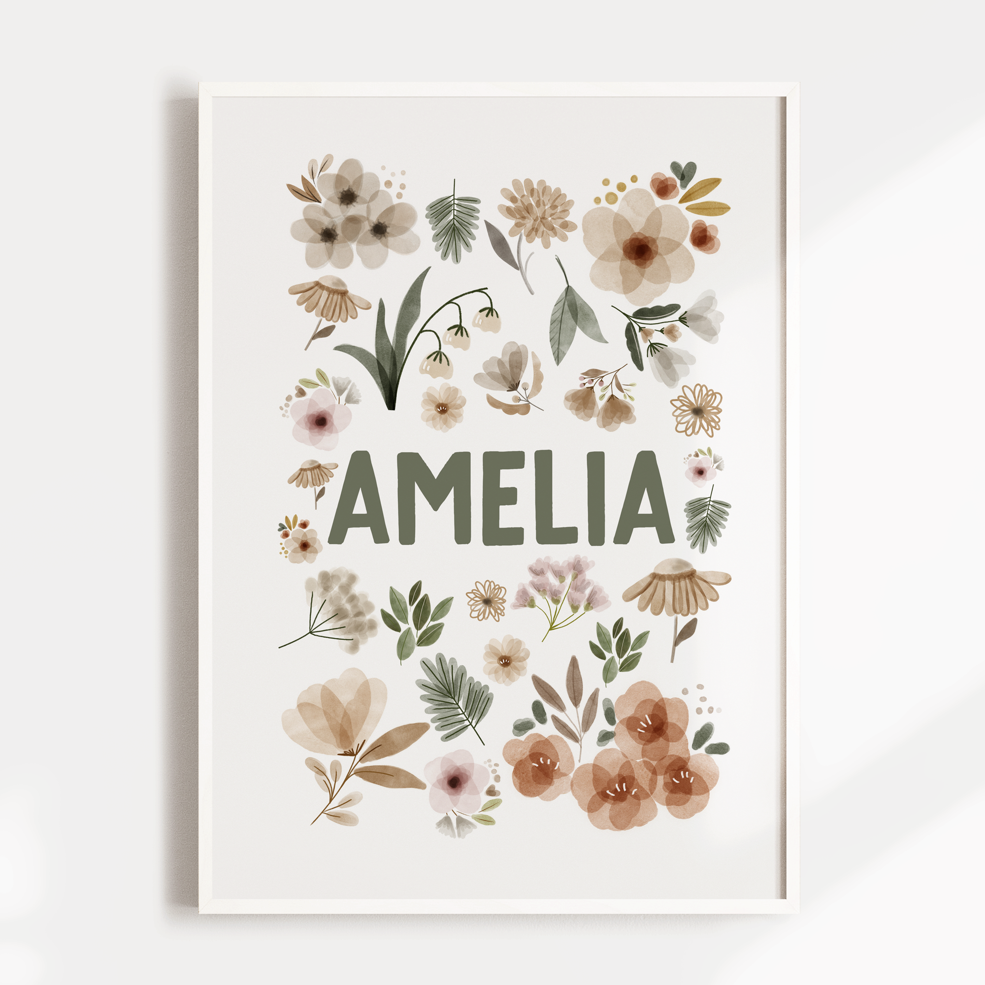 Girls Pink Floral Boho Bunny Nursery Print Set