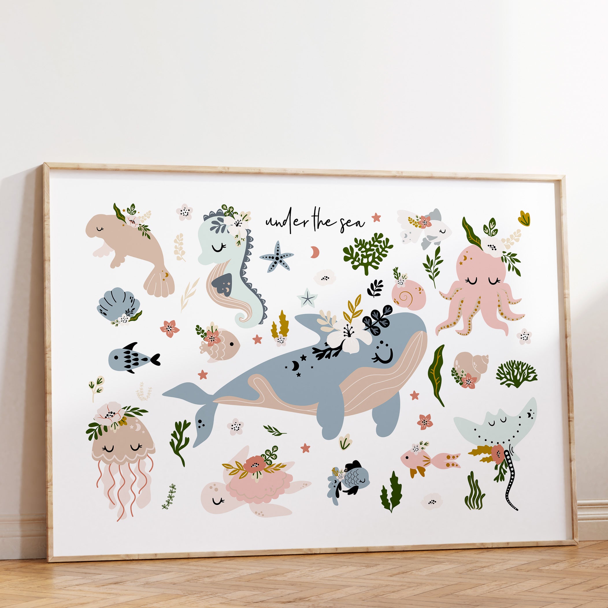 A gender neutral baby elephant wall art print, that is perfect for the woodland, jungle or safari nursery and bedroom decor. A perfect new baby gift that can be mixed with our other animal prints in this collection.