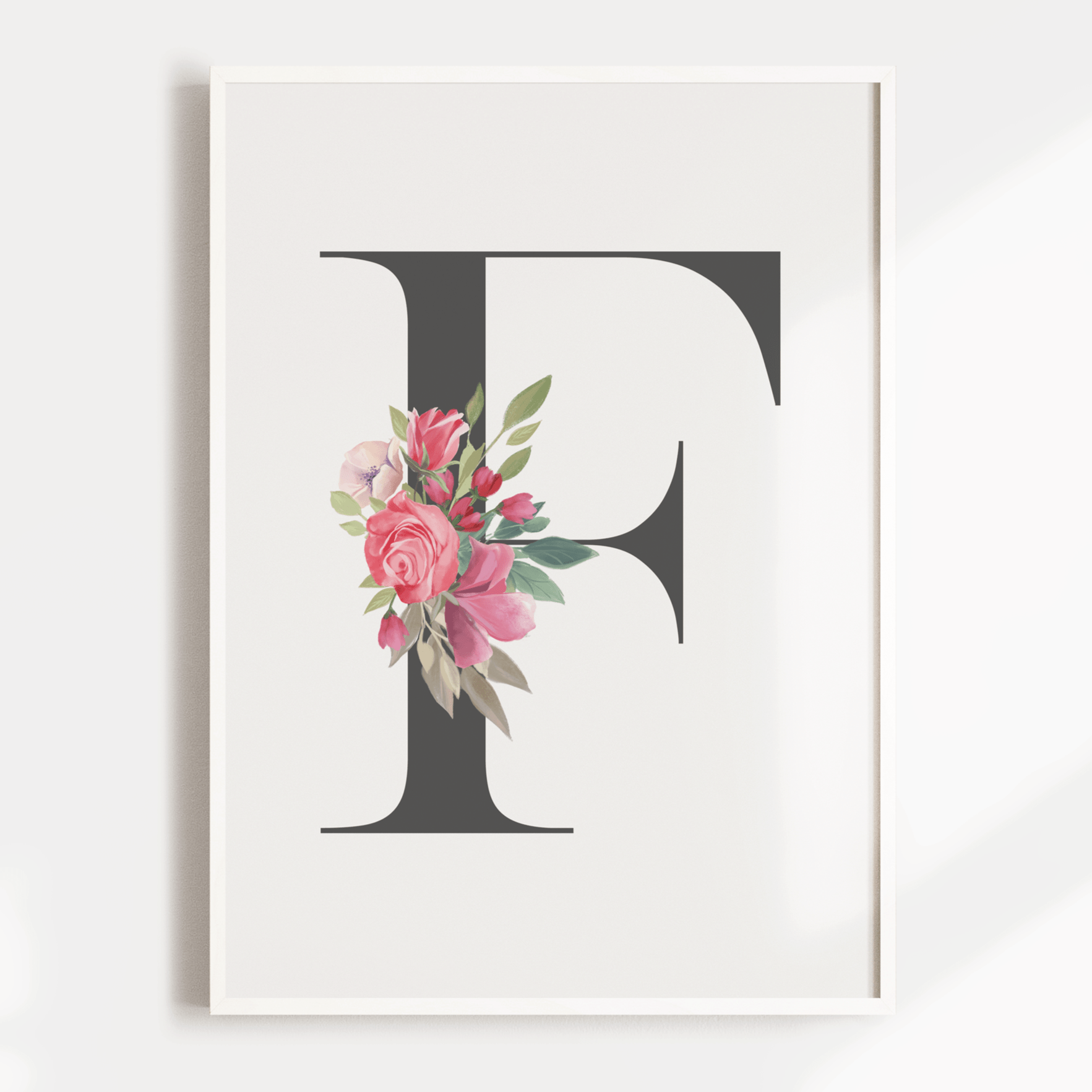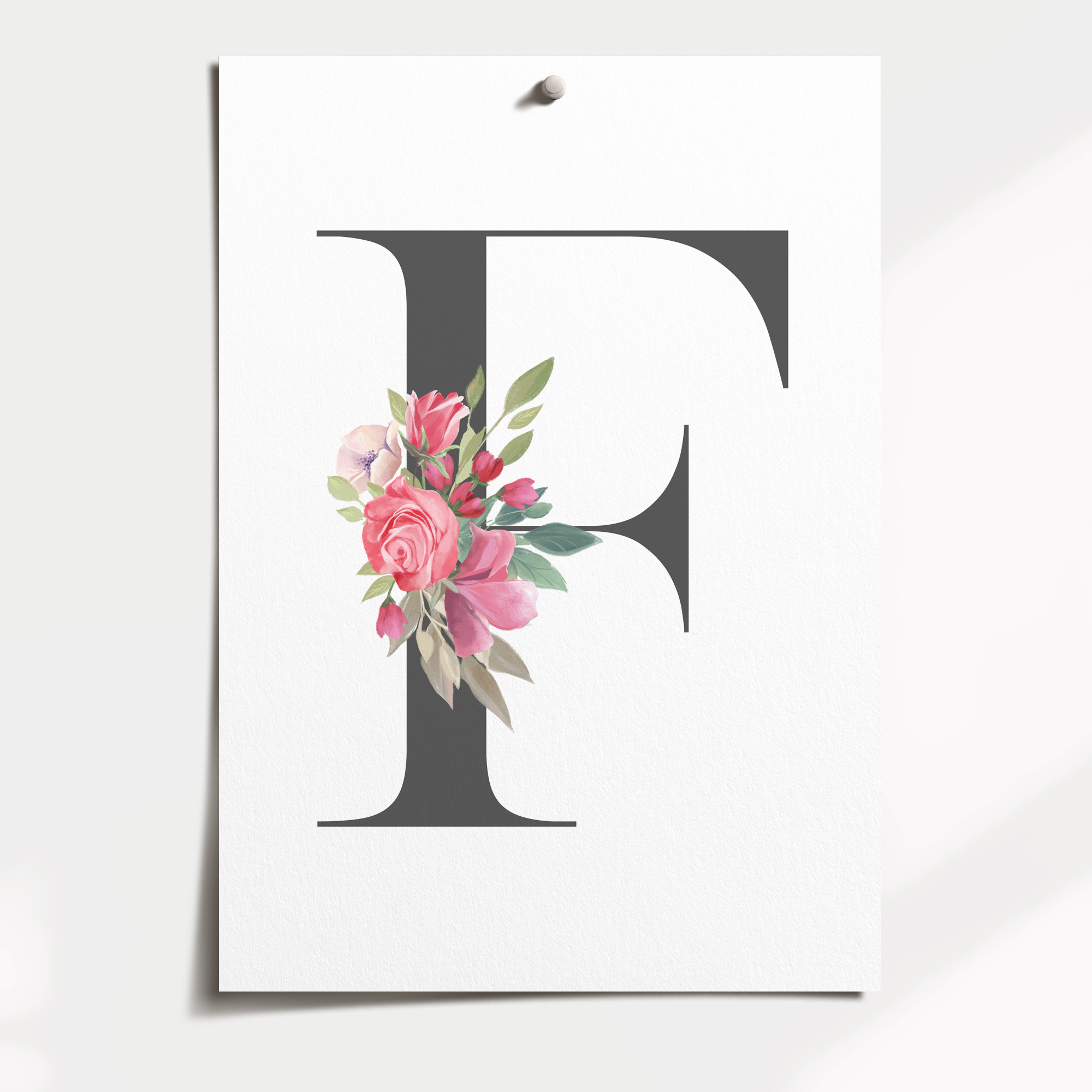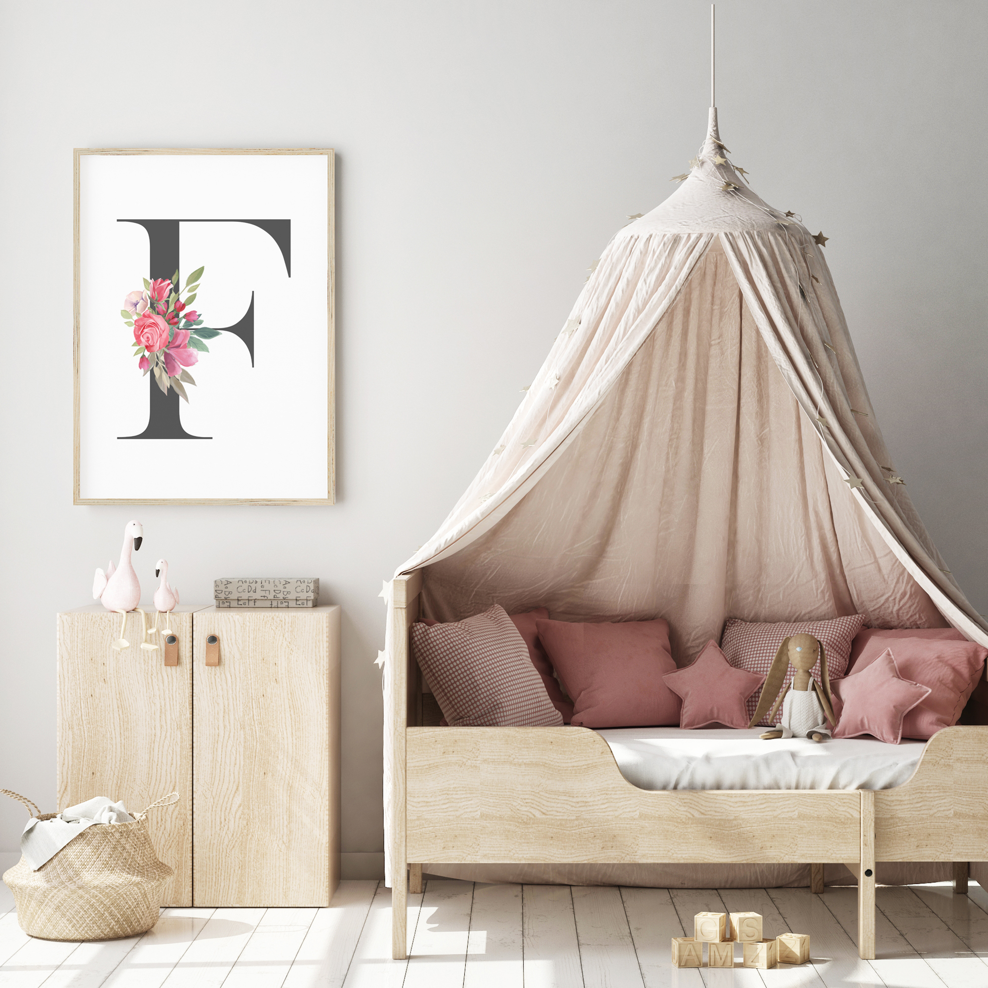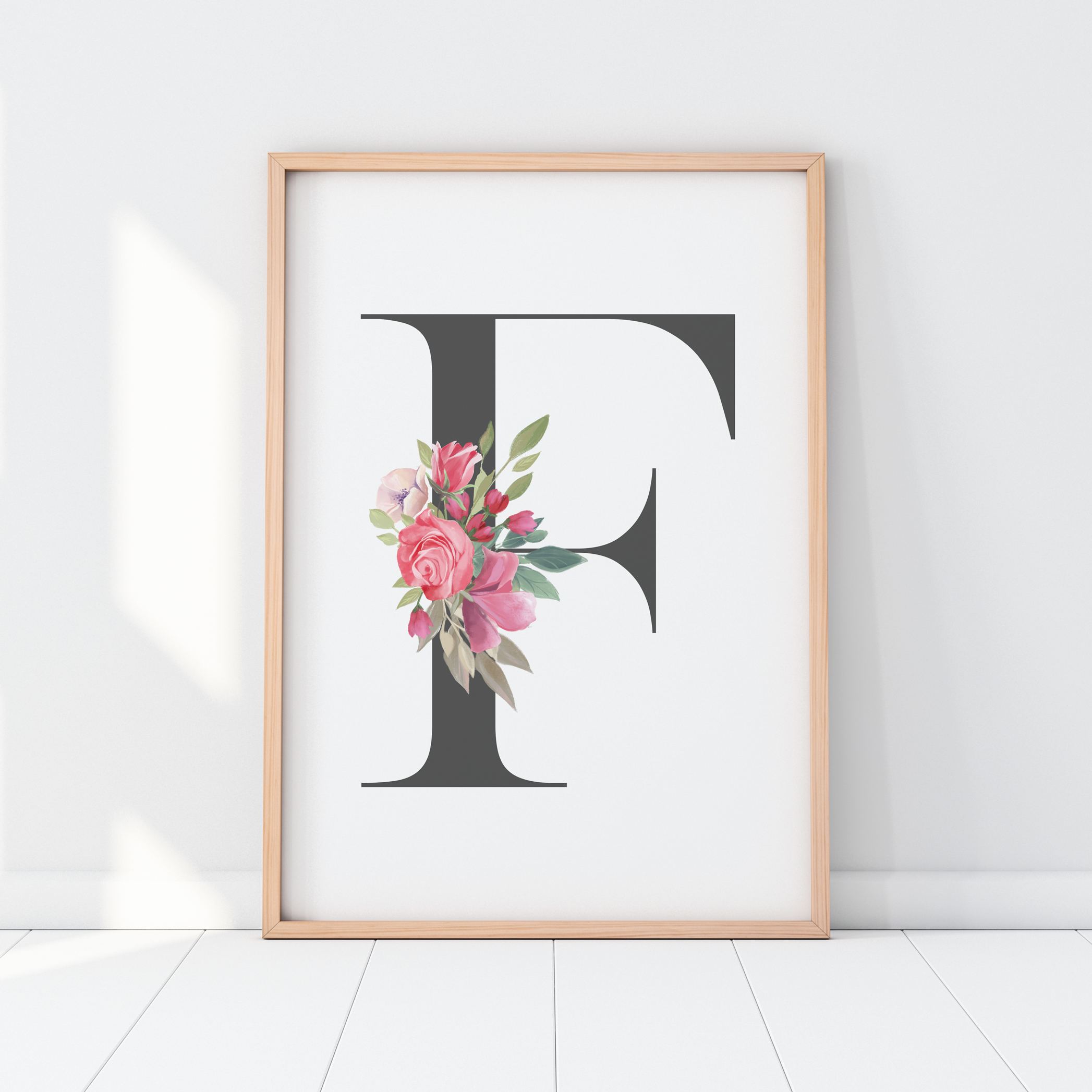 Our personalised floral letter wall art print is perfect for your little girls woodland inspired nursery or bedroom decor.  Featuring a soft pink watercolour flowers, your print will be customised with your choice of letter.