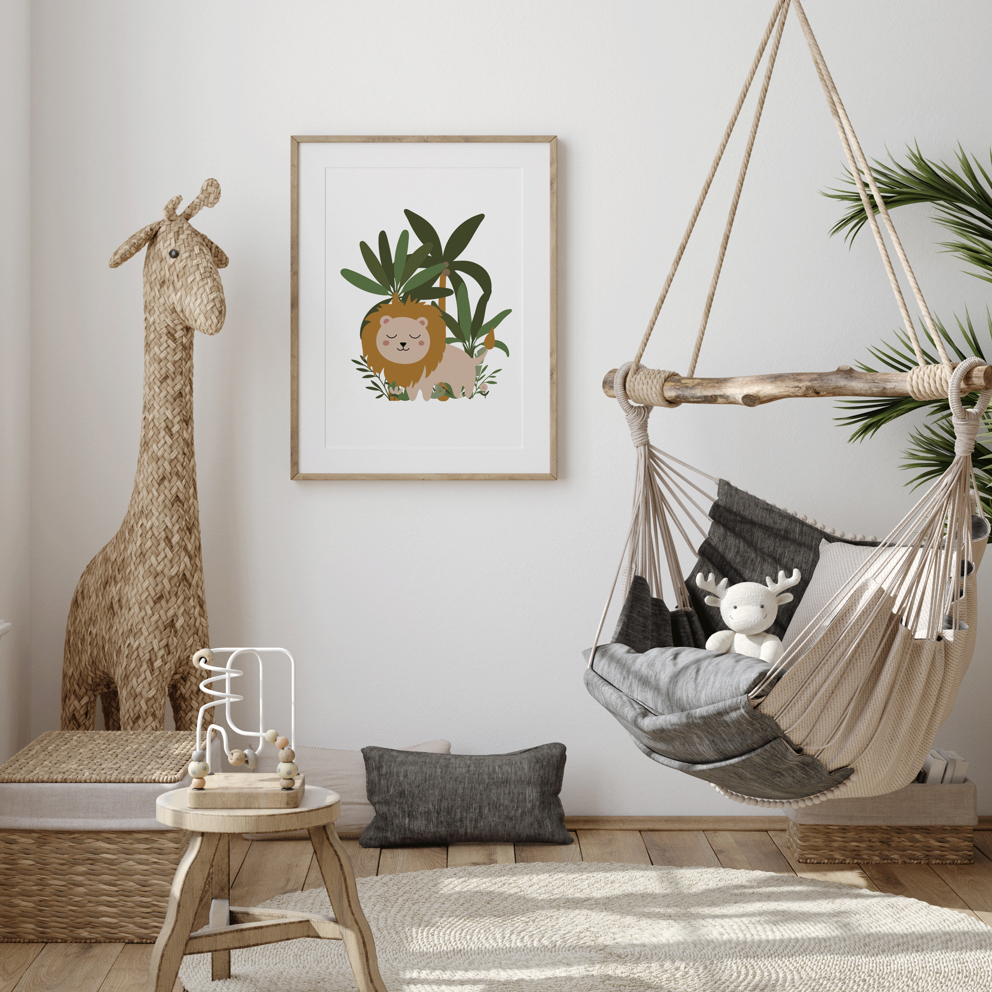 Perfect for the jungle or safari inspired nursery, children's bedroom or playroom décor is this lion nursery wall art print. A perfect new baby gift, or a great way to add the finishing touches to your own child's space.