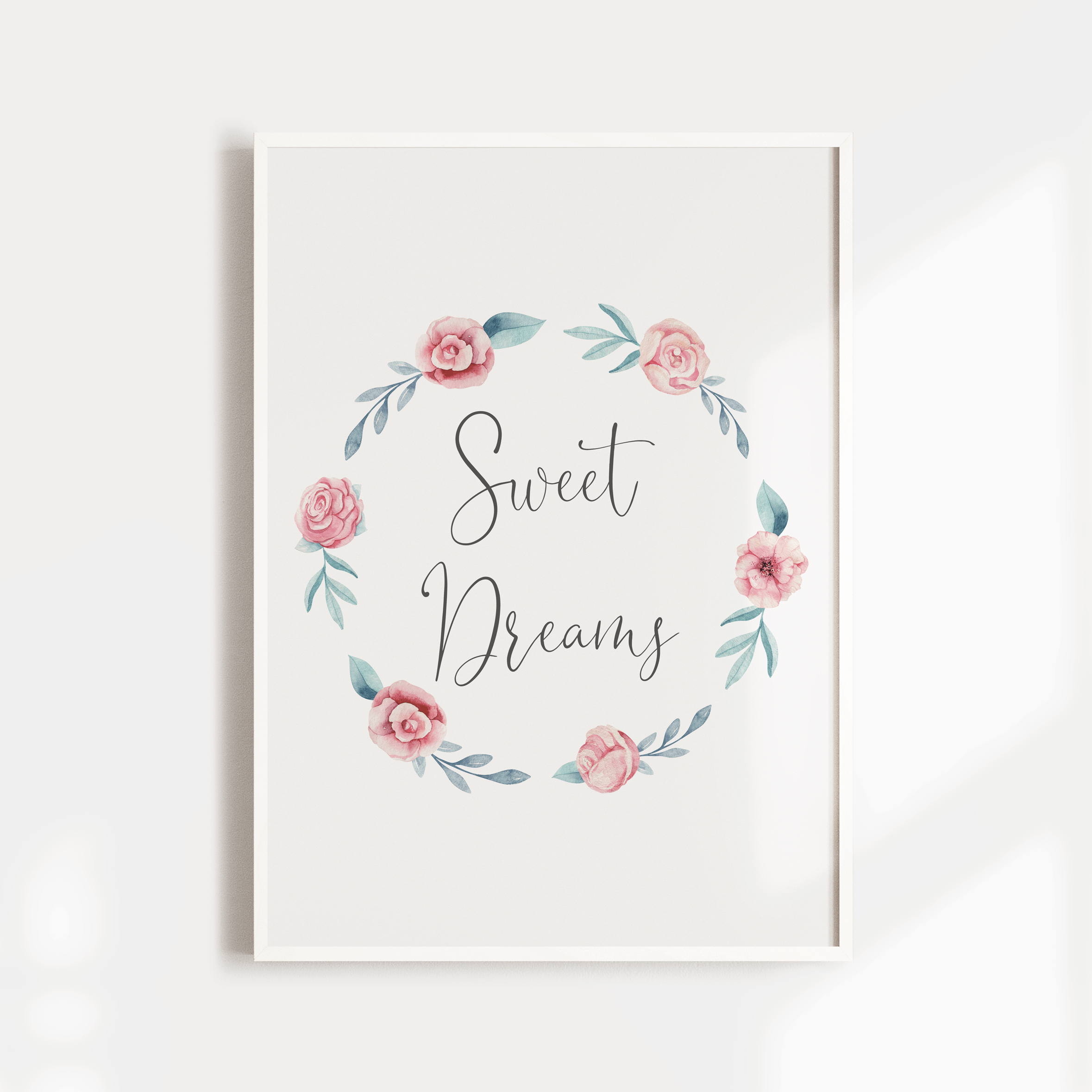 Pink Floral Watercolour Swans & Sweet Dreams Prints