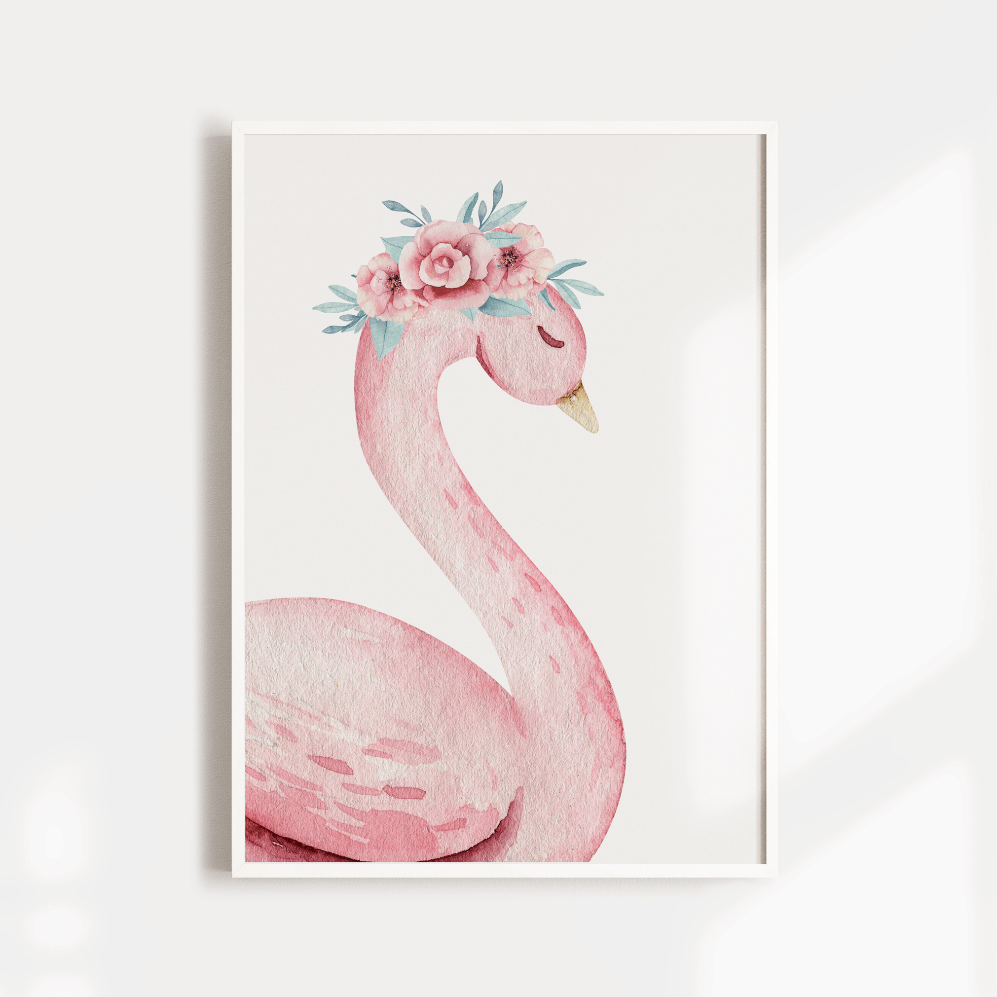 A set of 3 prints including two pink watercolour swans and a complimentary floral wreath 'sweet dreams' print.