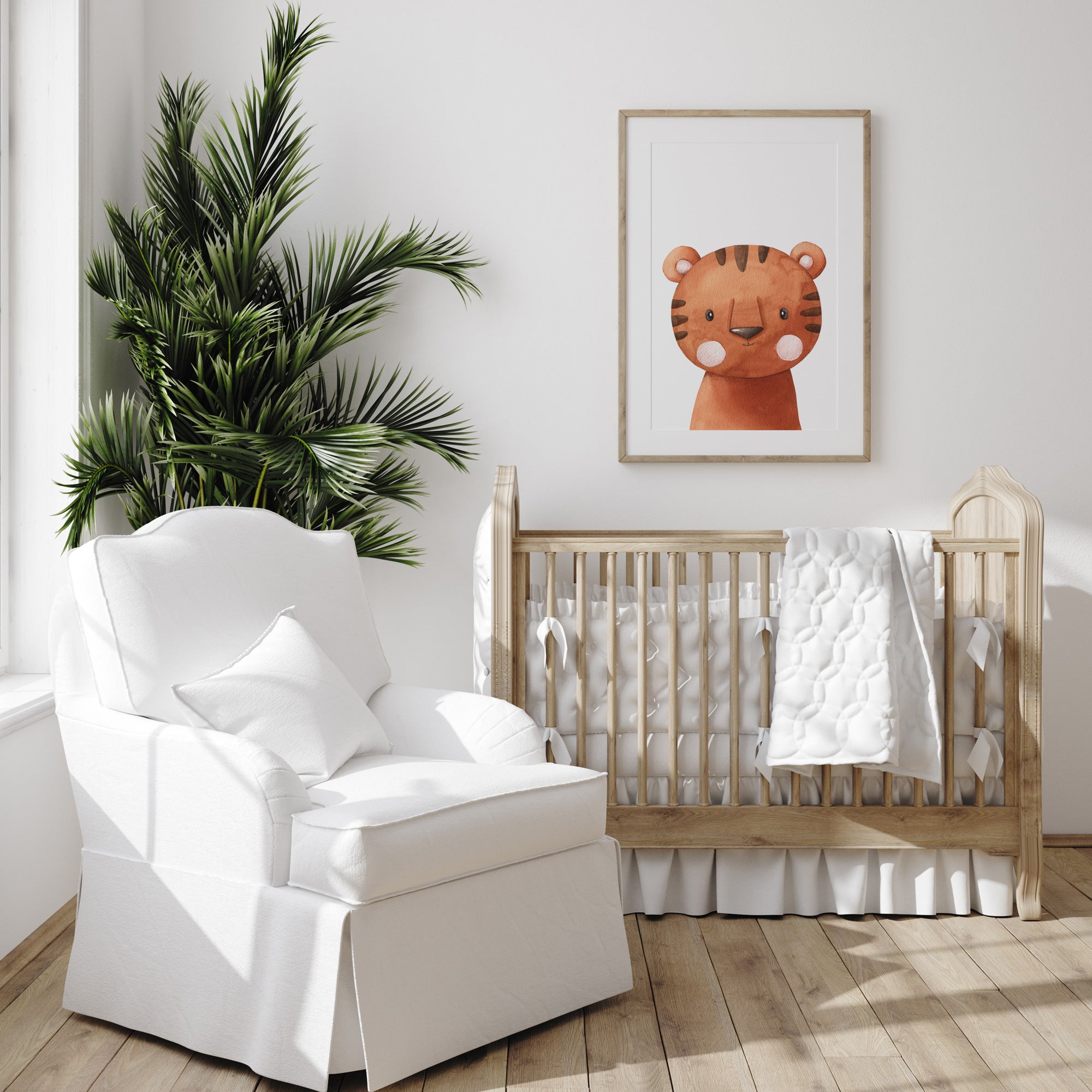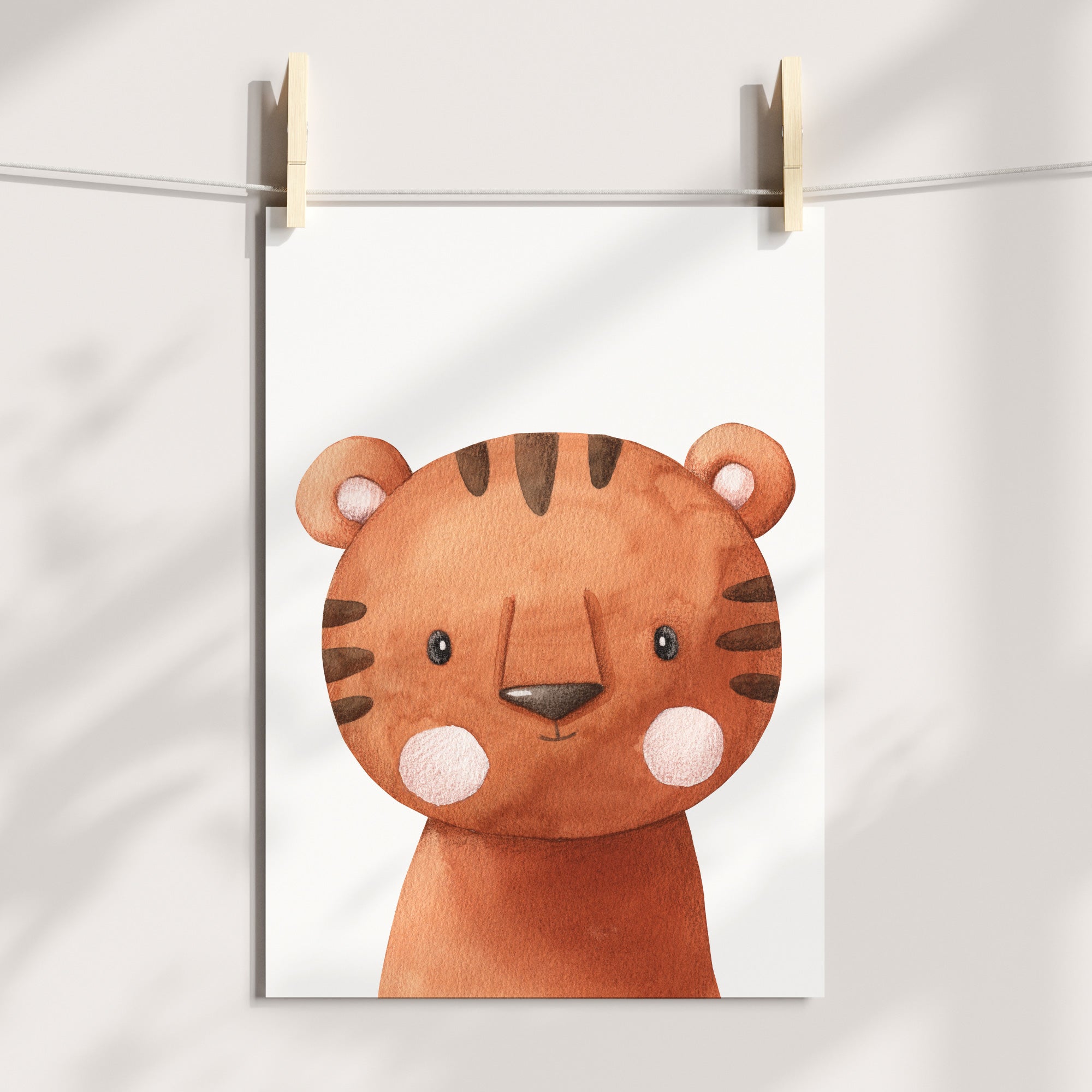 This watercolour tiger wall art print will make the perfect addition to your child's safari or jungle animal themed nursery, bedroom, or playroom decor. Pair it with one of our many other baby animal prints or use as a stand-alone statement.