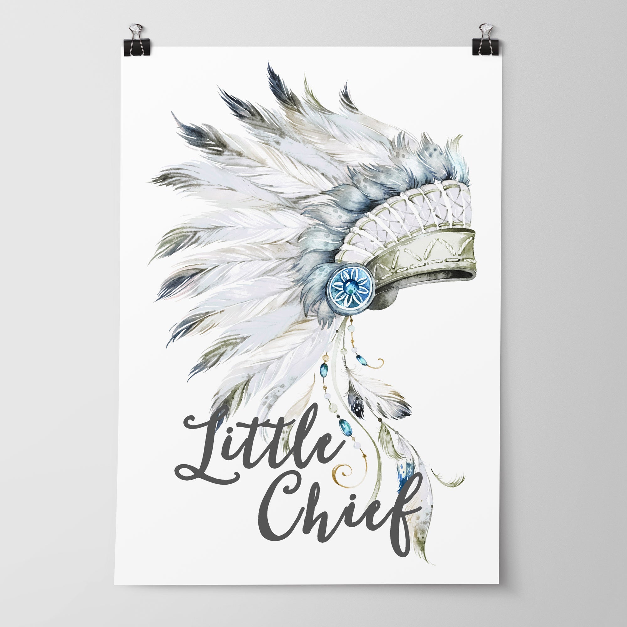 This set of three prints includes a tribal headdress, dreamcatcher and arrows print in a blue and grey colourway. Perfect for the boho or tribal nursery, bedroom or playroom decor.