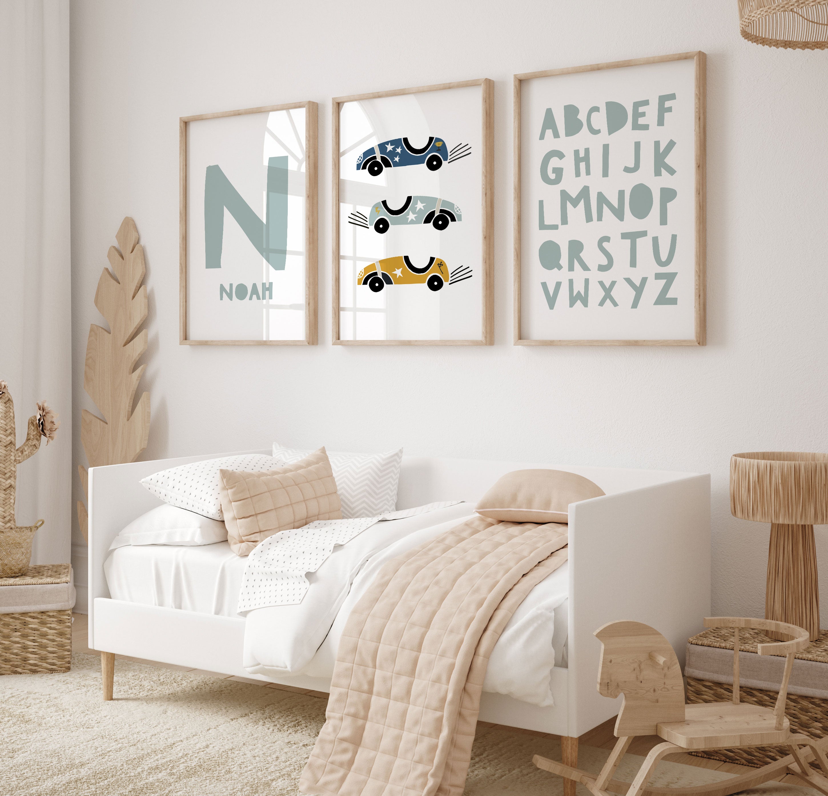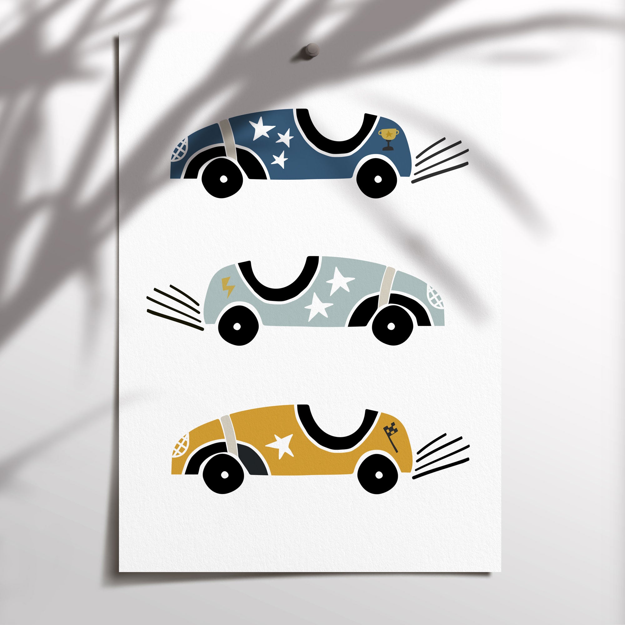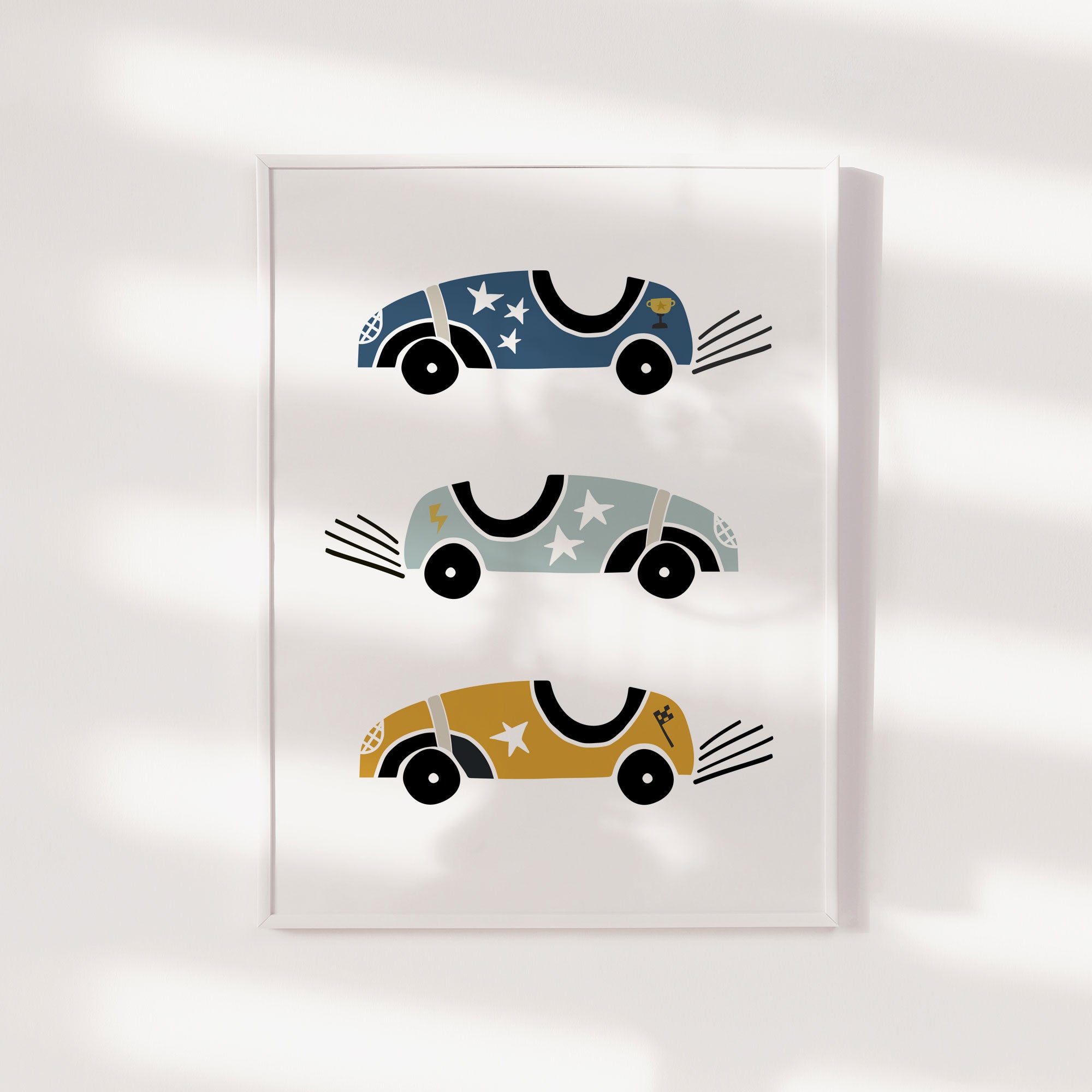 This fun car art print, featuring vintage racing cars makes a perfect new baby boy gift, or a great way to add the finishing touches to your own child's nursery or bedroom space.