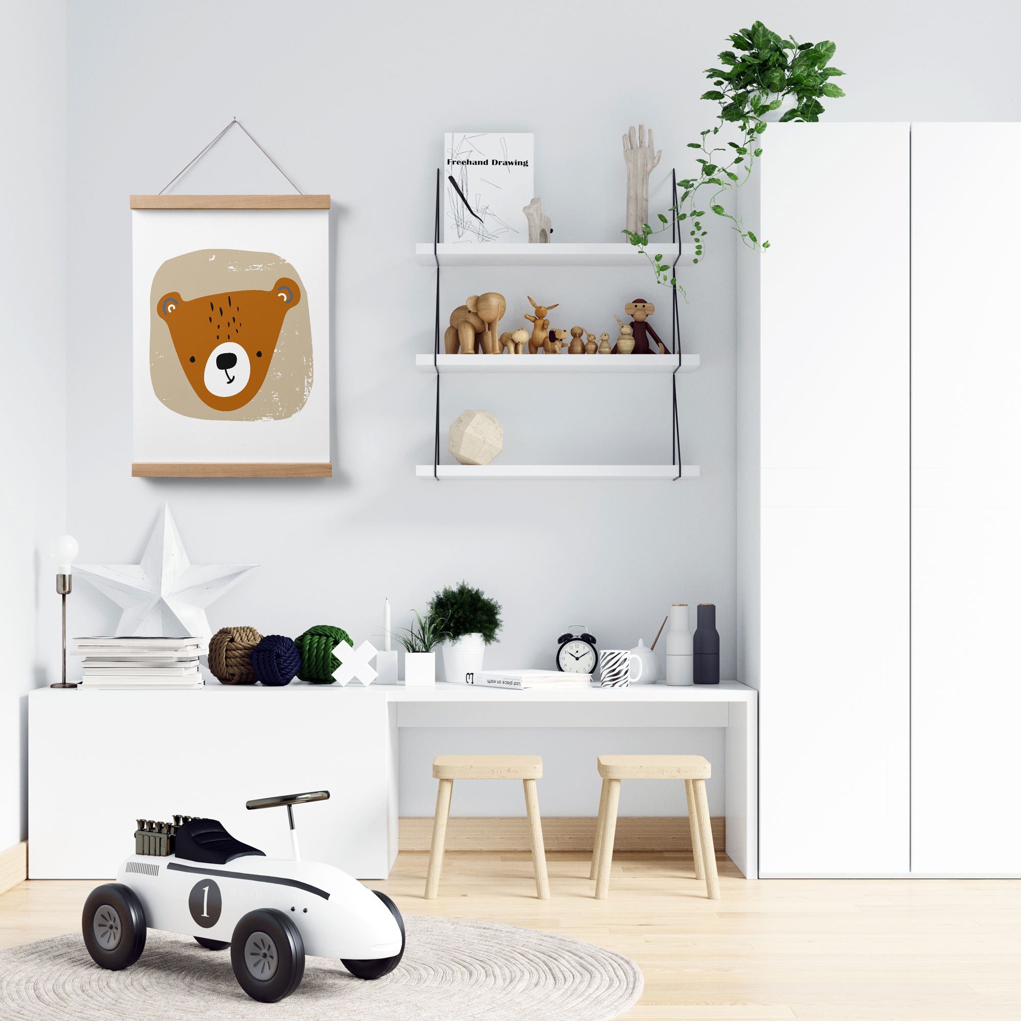 Featuring neutral tones this bear wall art print is perfect for the woodland or forest themed nursery, bedroom or playroom decor. Use as a standalone piece or pair with other co-ordinating prints.