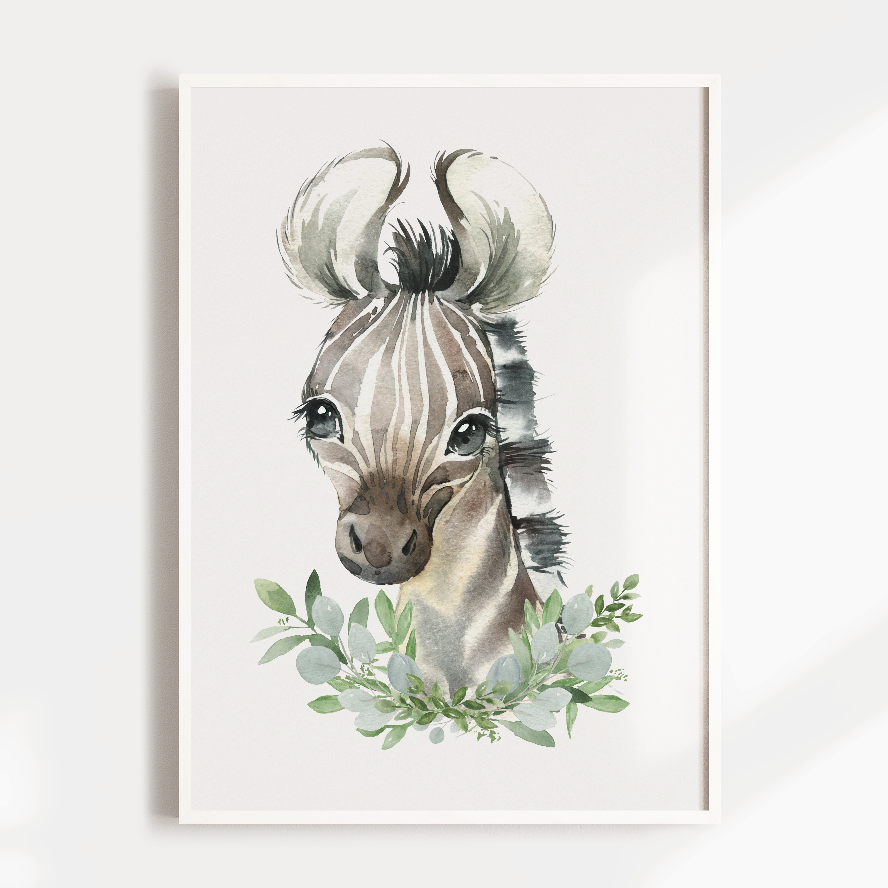 This watercolour baby zebra wall art, would make a lovely addition to a nursery, child's bedroom, or playroom. Pair it with one of our many other baby safari animal prints or use as a stand alone statement.